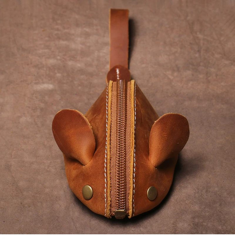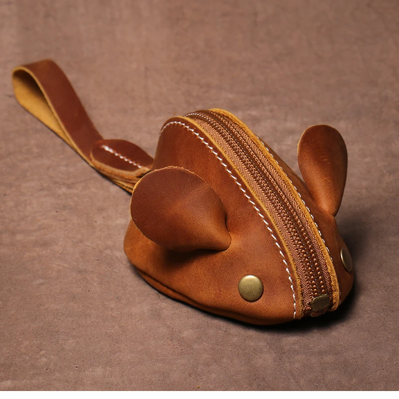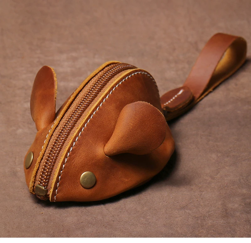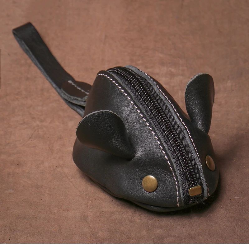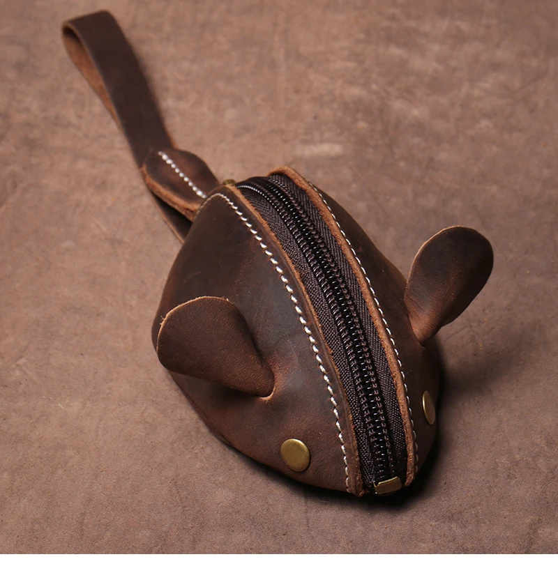 "Vintage Genuine Leather Mouse Coin Purse Key Wallet"