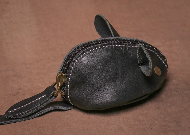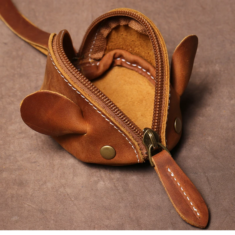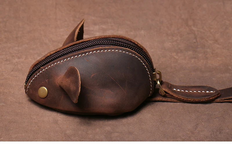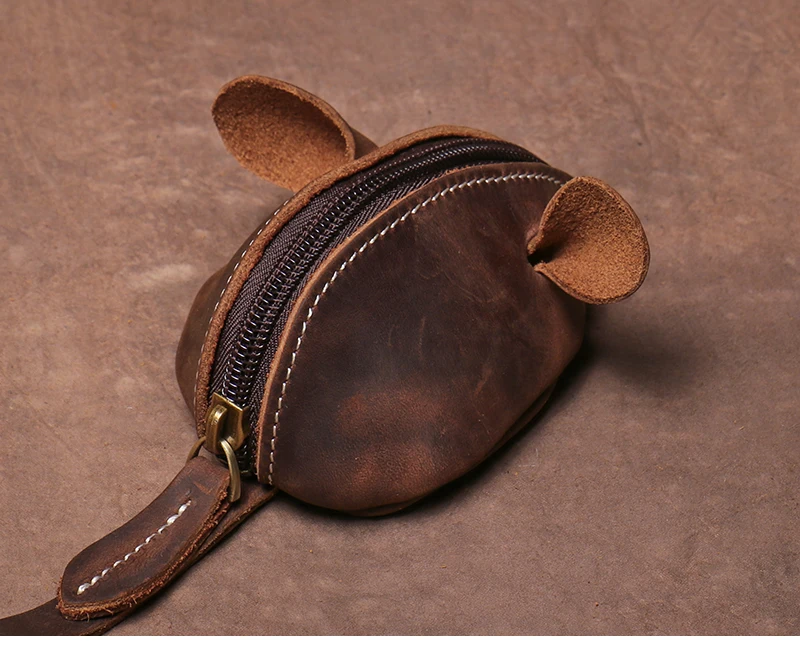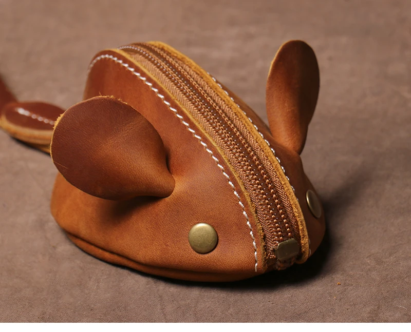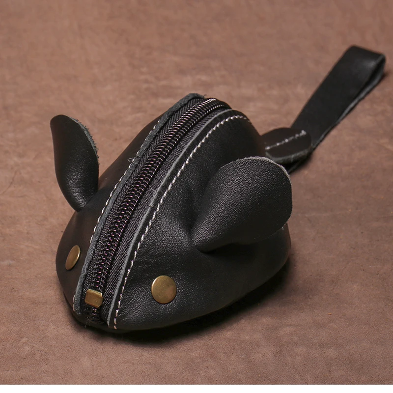 "Vintage Genuine Leather Mouse Coin Purse Key Wallet"